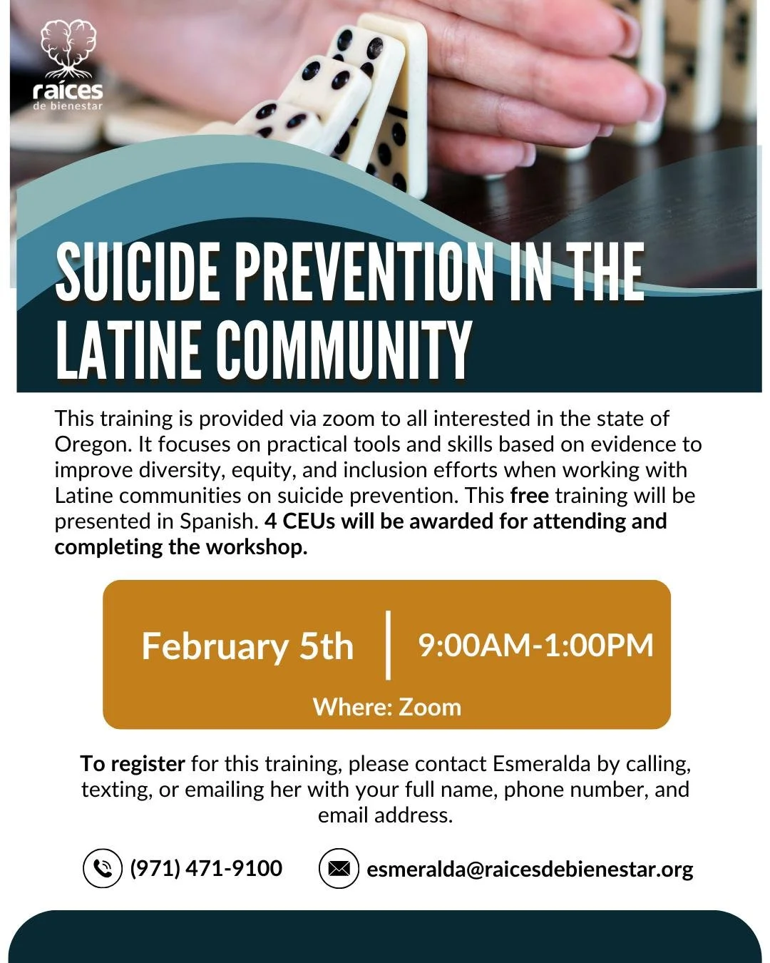 Prevention activities and education in true collaboration with our communities through culturally- responsive, trauma and healing informed care programs that center the strengths and honors the challenges faced by Latine Oregonians.